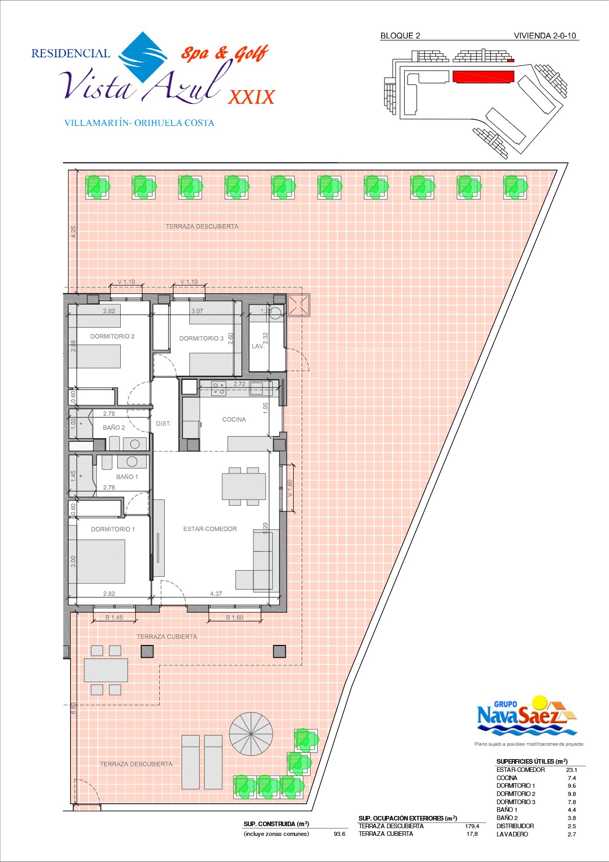 Velkommen til en stilren og velholdt leilighet i Vista Azul XXIX fra 2019, med en av anleggets beste beliggenheter. Her får du sol gjennom hele dagen – med morgensol på baksiden og sol fra midt på dagen til kveld på forsiden. Leiligheten ligger luftig og fint til, med utsikt mot fellesområdene.