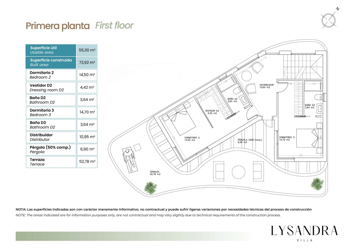 Velkommen til Villa Lysandra, en moderne frittliggende villa beliggende på strandsiden i La Zenia på Costa Blanca Sør. Boligen byr på 3 soverom og 3 bad, med en boareal på 158 m² og uteområder på totalt 592 m². Villaen leveres med privat basseng på hele 43 m² og romslig uteområde med hage, terrasse og takterrasse.