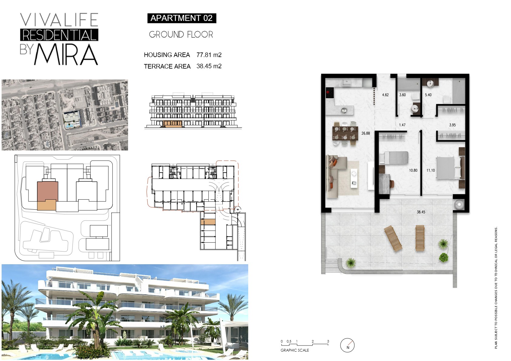 Viva Life er et attraktivt leilighetskompleks med moderne leiligheter midt i Lomas de Cabo Roig. Leilighetene er godt utstyrt og har et gjennomført lekkert design og praktisk utforming. Alle leilighetene har romslige terrasser og enhetene på grunnplan har direkte utgang til fellesområdet. Toppleilighetene har privat takterrasse som leveres ferdig utstyrt med utekjøkken.