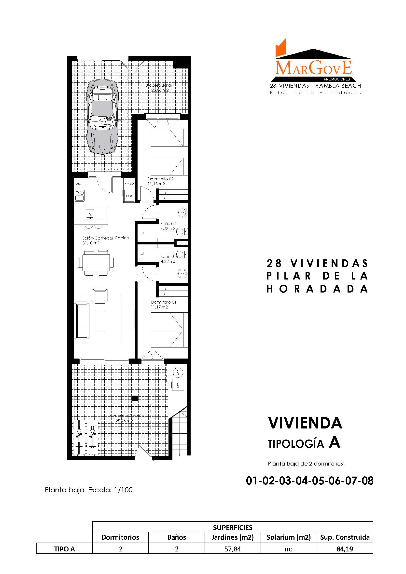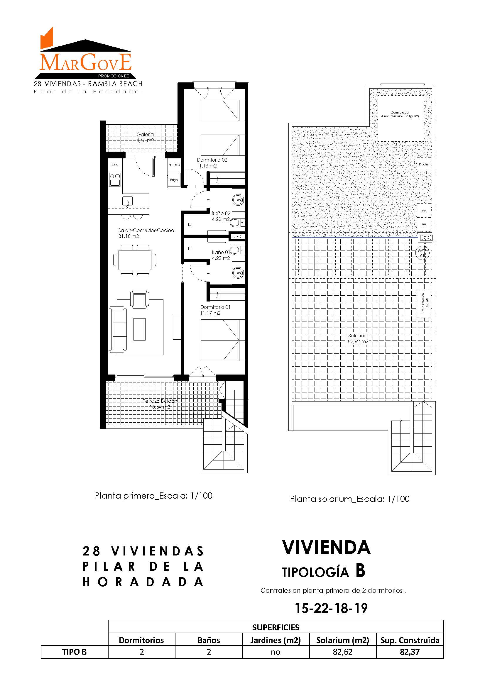 La Rambla Beach III es un exclusivo proyecto de apartamentos en Pilar de la Horadada, Alicante, que ofrece modernas viviendas de dos dormitorios y dos baños. Los apartamentos tienen un diseño de planta abierta que combina la cocina y el salón, proporcionando un ambiente amplio y luminoso. Los apartamentos de la planta baja tienen jardín privado, mientras que los de la planta superior tienen terraza privada en la azotea. Los apartamentos están orientados al sur, lo que proporciona mucho sol en la terraza delantera. Todos los apartamentos incluyen un aparcamiento y están equipados con armarios empotrados.