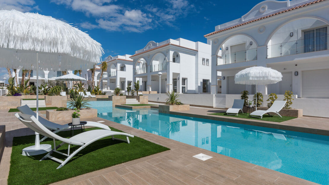 Ook hier is er veel variatie in architectuur in wisselwerking met goed geplande gemeenschappelijke ruimtes met tuinen en zwembaden. Wat alle woningen in de inrichting gemeen hebben, is dat er veel lucht en ruimte is.